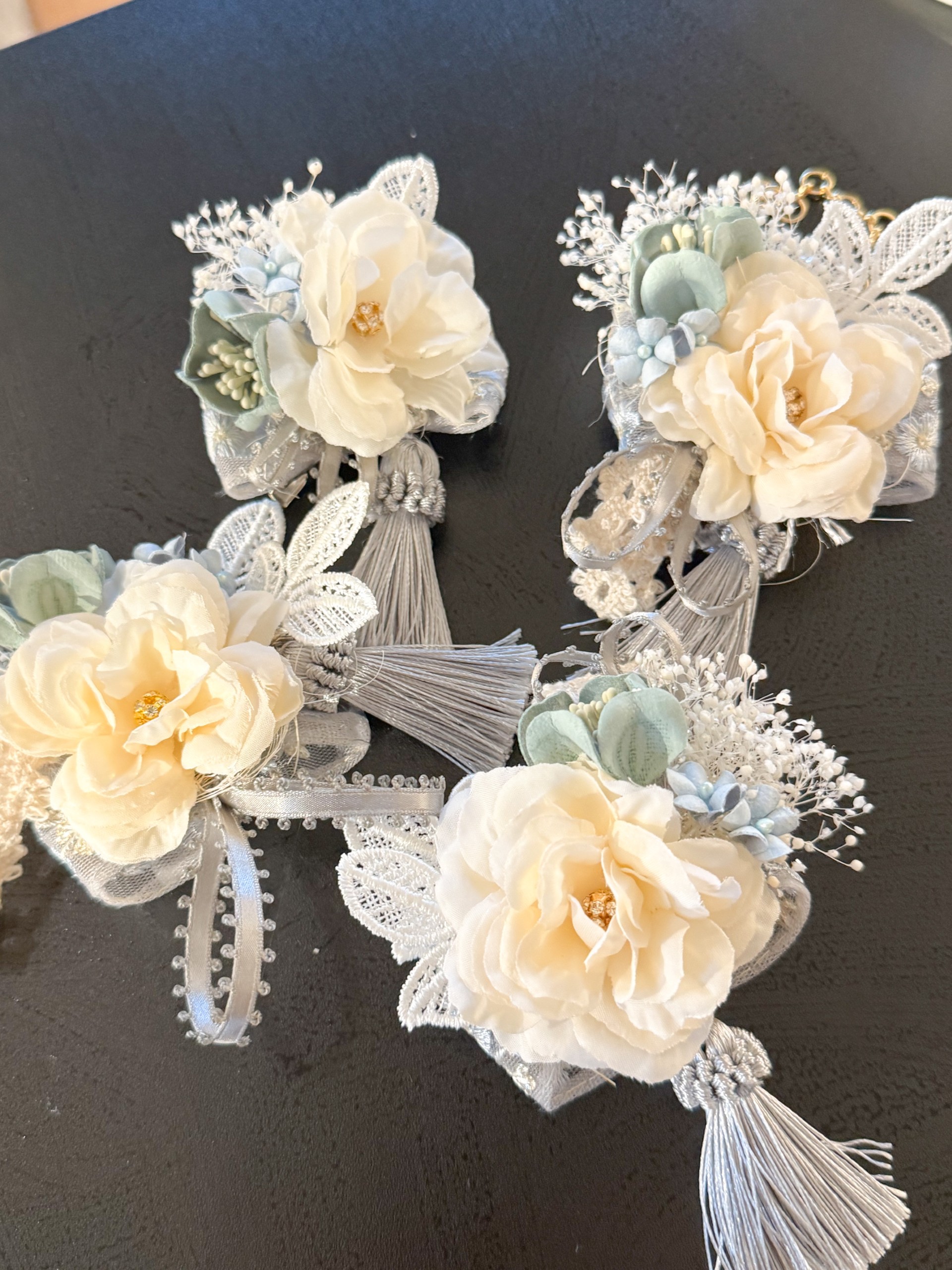 コサージュとしても、バックチャームとしても楽しめるデザインの作品を作りました^^