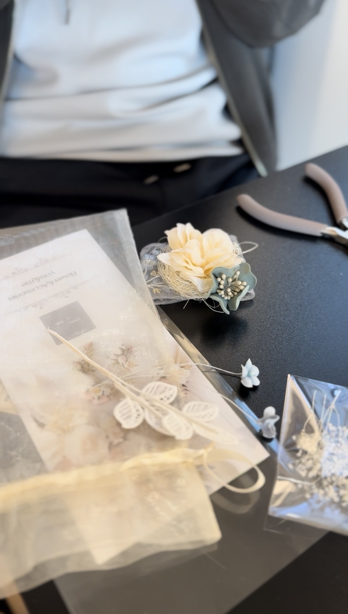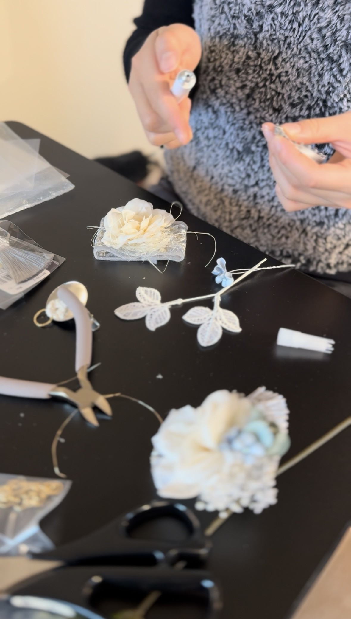 今回のテーマは刺繍リボンとアーティフィシャルフラワーを使い
