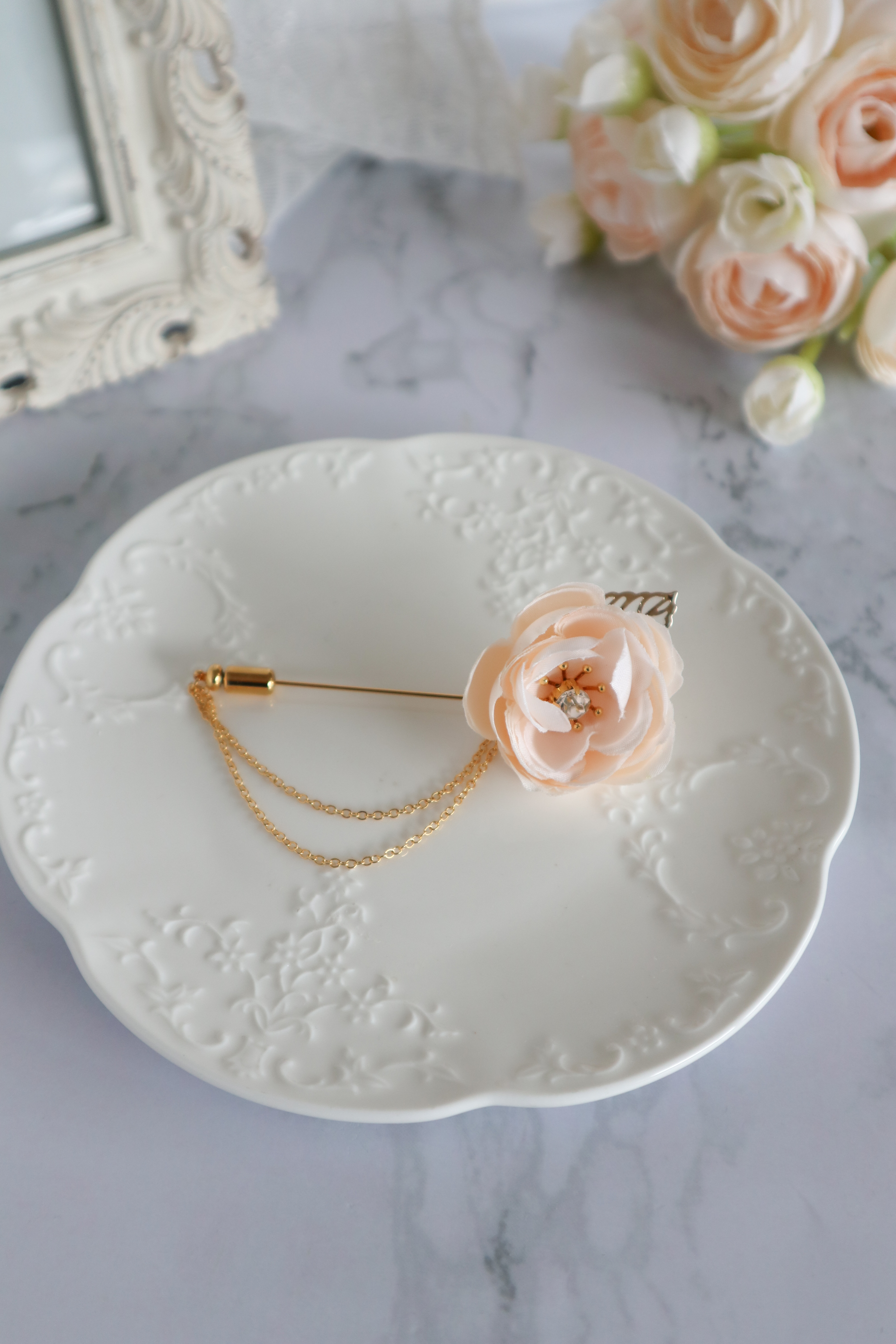 優しい色合いのお花に、チェーンを添えた上品なブローチレッスンです♪